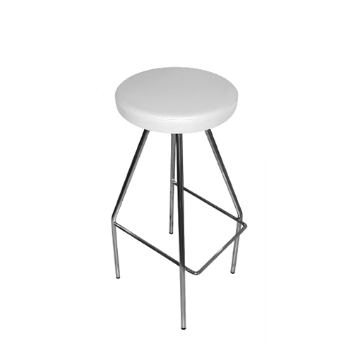 Estrutura Metálica (4 pés) cromada ou pintada a epoxy.Assento e Costa Integral revestido a Pele Sintética.