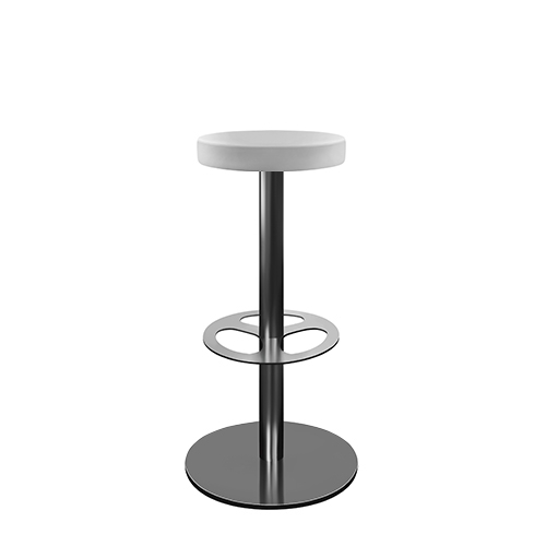 Estrutura Metálica (base e coluna) cromada, pintada a epoxy ou inox escovado.Assento e Costa Integral revestido a Pele Sintética.
