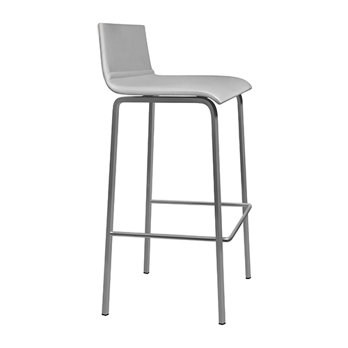 Estrutura Metálica (4 pés, tubo quadrado) cromada, inox escovado ou pintada a epoxy. Assento e Costa Integral revestido a Pele Sintética.
