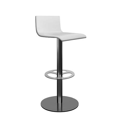 Estrutura Metálica (base e coluna) cromada, pintada a epoxy ou inox escovado.Assento e Costa Integral revestido a Pele Sintética.