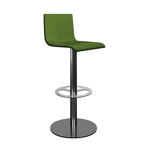 Estrutura Metálica (base e coluna) cromada, pintada a epoxy ou inox escovado.Assento e Costa Integral revestido a Pele Sintética.
