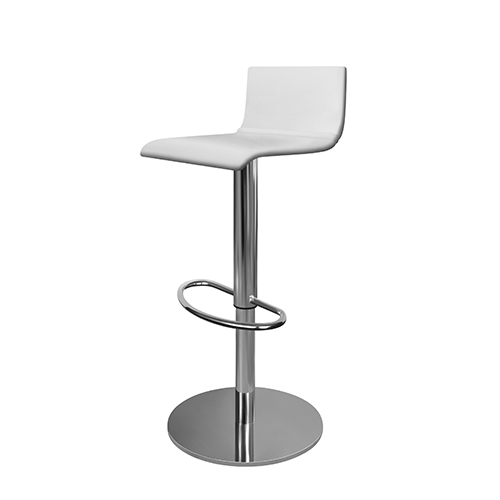Estrutura Metálica (base e coluna fixa e rotativa| base e coluna extensível e rotativa) cromada. Assento e Costa Integral revestido a Pele Sintética.