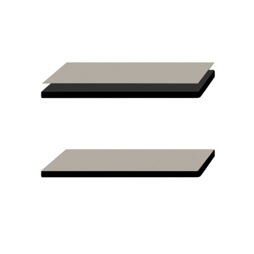 Conjunto de folhas de papel kraft, impregnadas com resina melamínica. Revestimento robusto e higiénico com alta resistência a agressões externas, (riscos, choques, manchas…).