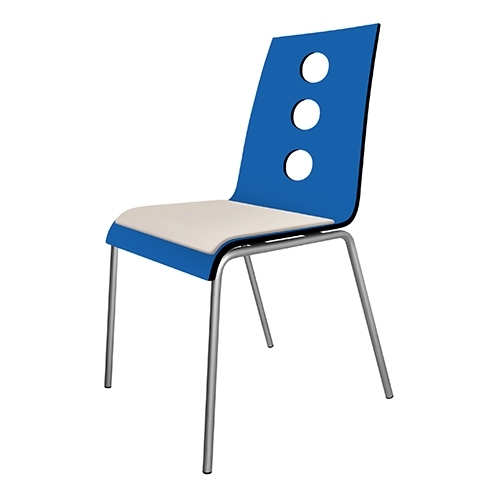 Estrutura Metálica (em tubo redondo) cromado, pintado a epoxy ou inox escovado. Assento e Costa Integral em contraplacado folheado a Faia ou HPL com Assento revestido a Pele Sintética.