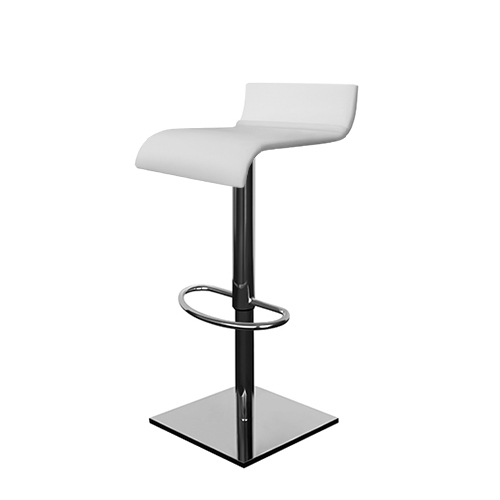 Estrutura Metálica (base e coluna fixa e rotativa| base e coluna extensível e rotativa) cromada. Assento e Costa Integral revestido a Pele Sintética.