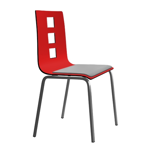 Estrutura Metálica (em tubo quadrado) cromado ou pintado a epoxy. Assento e Costa Integral em contraplacado folheado a Faia ou HPL.