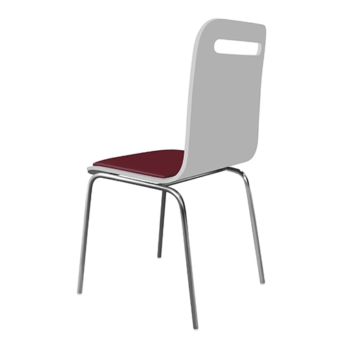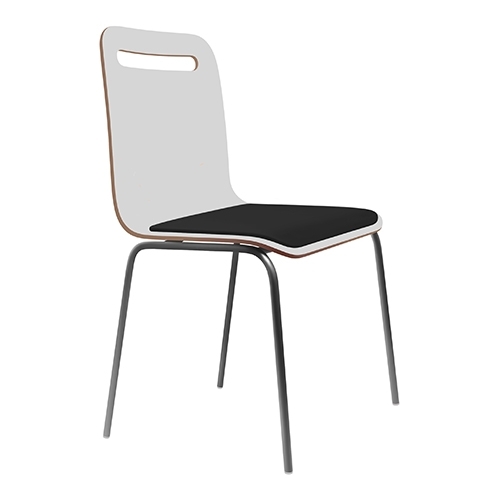Estrutura Metálica (em tubo redondo) cromado, pintado a epoxy ou inox escovado. Assento e Costa Integral em contraplacado folheado a Faia ou HPL com Assento revestido a Pele Sintética.
