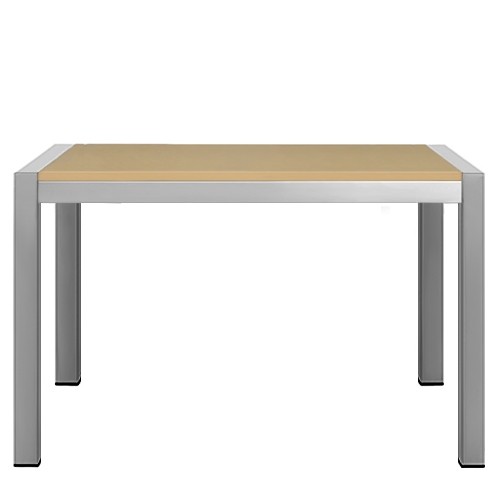 Estrutura Metálica (4 pés) pintada a epoxy ou inox escovado. Tampo (Aglomerado, MDF ou Compacto Fenólico) folheado a HPL ou em Melamina.