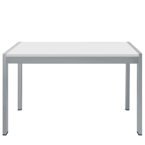 Estrutura Metálica (4 pés) pintada a epoxy ou inox escovado. Tampo (Aglomerado, MDF ou Compacto Fenólico) folheado a HPL ou em Melamina.