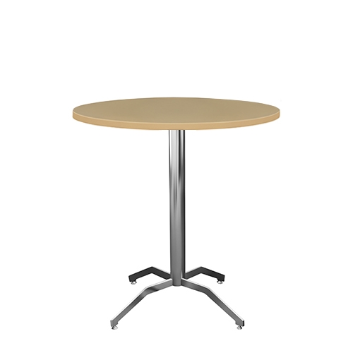 Estrutura Metálica (base e coluna) cromada, pintada a epoxy ou inox escovado. Tampo (Aglomerado, MDF ou Compacto Fenólico) folheado a HPL ou Melamina.