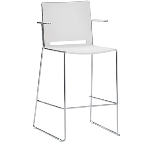 Estrutura Metálica (patim) cromada ou pintada a epoxy.Assento e Costa Integral em Polipropileno.
