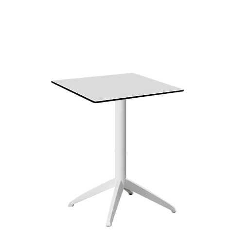 Base em Polipropileno, Coluna em Alumínio Anodizado pintado Epoxy na mesma cor. Tampo (Compacto Fenólico) folheado a HPL fixo.